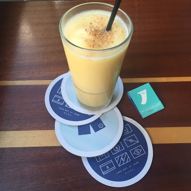 The painkiller is the cocktail of the Virgin Islands. It’s made up of pineapple juice, a little OJ, cream of coconut, rum, and topped with grated nutmeg. It’s seriously yummy and was invented in the BVIs (more on that later!) My absolute favorite Painkiller on St. John can be found at The Longboard. The Longboard is a gorgeous open air restaurant in the main town, Cruz Bay. It has amazing food and the best frozen painkiller. We had multiple meals at The Longboard, and I seriously miss sitting on the deck, sipping a frozen painkiller, and watching the people of St. John walk by.